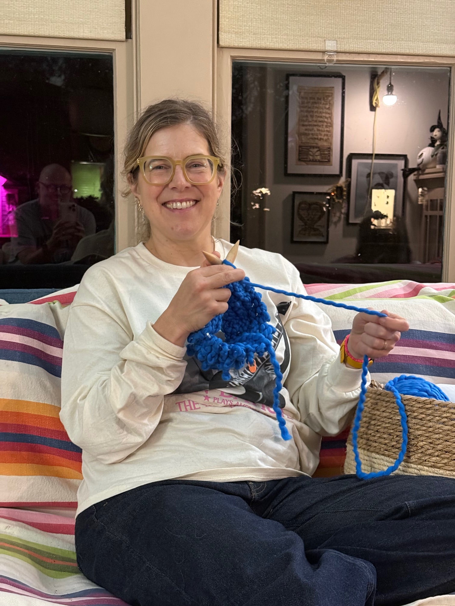 I decided in August that knitting was making a return to the daily schedule.  The HoM actually started with me making and selling crocheted hats out of our Brooklyn apartment (truth be told, also during a confusing time).  The demands of kids and life had me set set it aside but the last few months have seen the knitting needles replacing the phone.  The knitting basket has been my plus one on road trips, after school activities, and movie nights and it has been such a boost.  It has become a more meditative art experiment than just keeping my hands busy. I keep thinking about the aunt that makes everyone ski sweaters and it’s not because you can’t buy one, it is because you can put love into every stitch.  I want you to know your Aunt Cassie loves you very much.