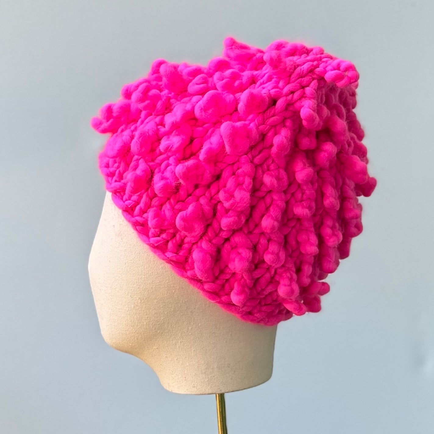 • Load image into Gallery viewer, Popcorn Beanie in Electric Pink